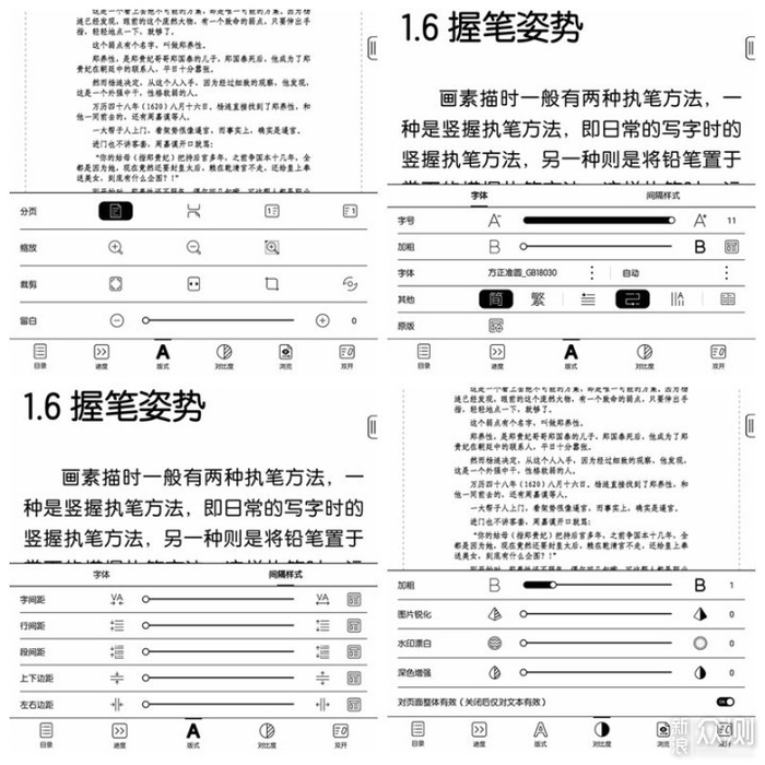 版式调整、对比度等可以调整的选项很多,让每一本书都是适合自己的样子,这是纸质书所不及的地方。