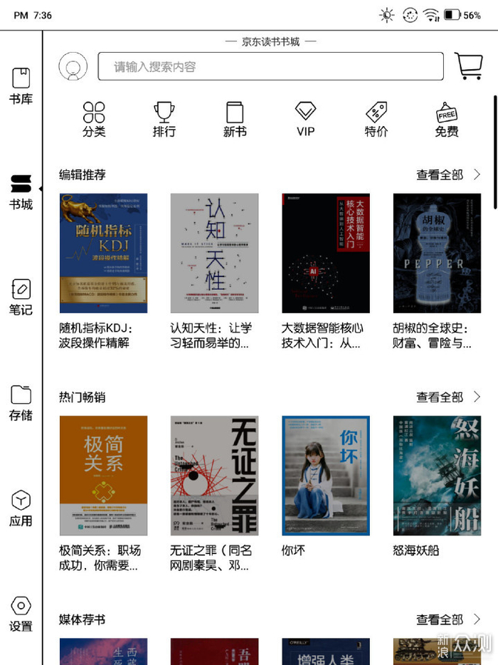 内置书城是和京东读书合作,有京东会员的用户可以畅读里面的vip书籍,资源还是挺丰富的。