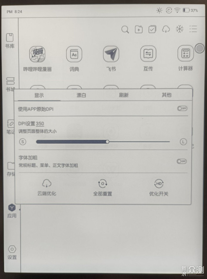 对于app,还可以从系统层面进行优化,调整显示效果、刷新率等,使用起来更适合墨水屏。
