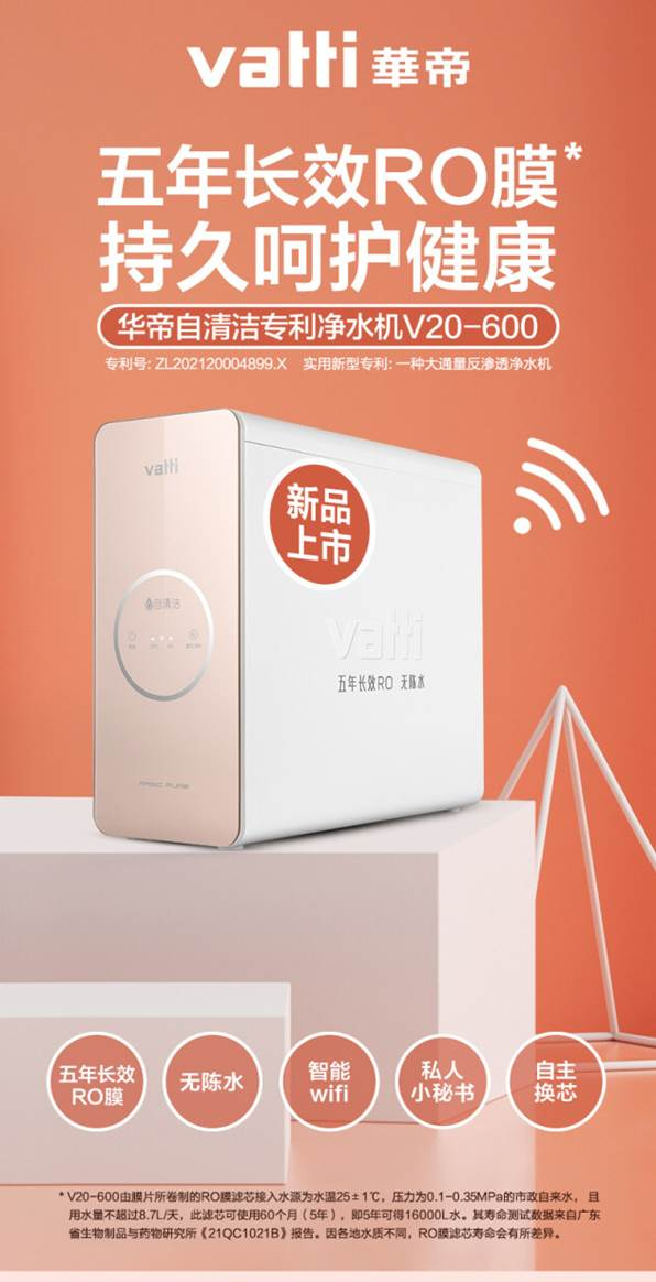 华帝自清洁净水机3999普及风暴活动将持续到6月16日,主推2022年新上市的华帝自清洁净水机V20,旨在不断满足国人的健康饮水需求。