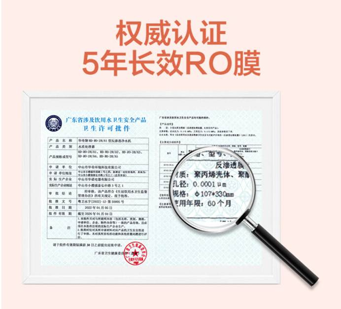 市面上大部分净水机的RO滤芯寿命只有2年左右就要更换一次,费用很高。创新智净芯科技,最大限度提高了膜片的有效利用率,反渗透RO膜的使用寿命可延长至5年(60个月)。