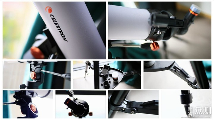 细节方面,星特朗SCTW-80天文望远镜白色镜筒部分做了一些纹理设计,有不错的质感和手感,尾部则是目镜以及寻星镜等部件的结合点,三脚架采用的是二级伸缩,质感也不错,赠送的托盘比较实用,可以放一些小部件。