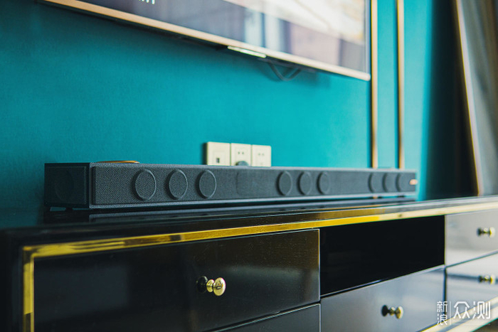 Jamo HCSB5家庭影院回音壁系统一共有三款配色:PVC银灰色、PVC黑金色和实木贴皮黑灰色,上手的就是黑金款,和电视墙的装修风格算是比较搭。