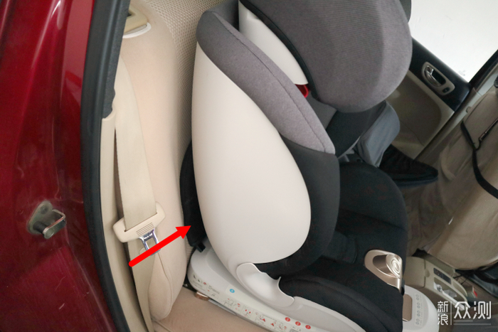 这款座椅最大的特点是座椅设计得比普通“靠前”,因为椅背不光结构很看着很厚实,还有额外的防翻转装置顶在汽车的椅背上,结构上,确实很稳定,当然,这也为反向安装争取了额外的腿部空间。