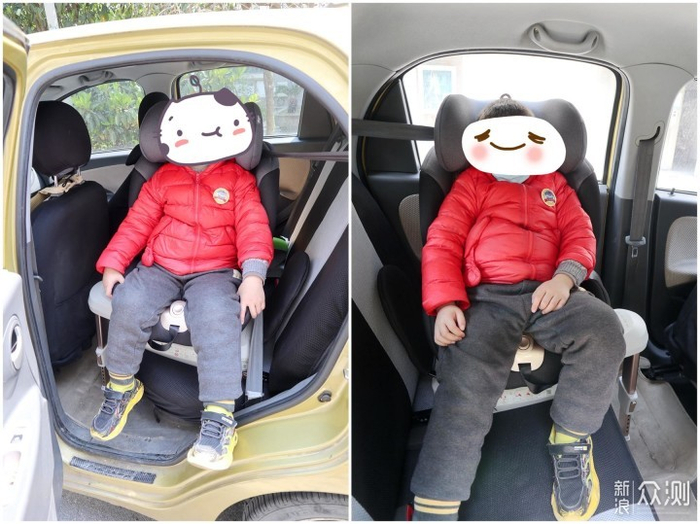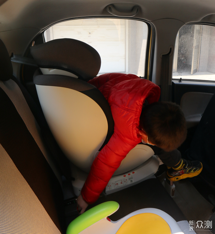 首先请用户留意一下,如果是如笔者之前拍照的黄色车辆——一种微型车——那宝宝年龄稍大(估计上小学),哪怕正向安装,也会因为座椅本身占了较大空间从而导致宝宝的腿有点儿顶前排座椅的靠背。过去几年这个不是问题,因为当时微型车在国内几乎绝迹,但是现在不少用户都添置了溜娃通勤专用小汽车,因此补充说明下。