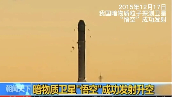 2015年12月17日,我国在酒泉卫星发射中心用长征二号丁运载火箭成功将暗物质粒子探测卫星“悟空”发射升空,这也是我国首颗暗物质粒子探测卫星。