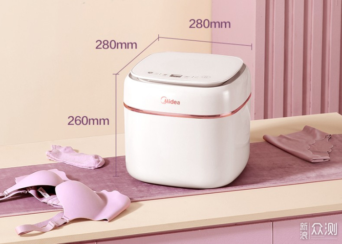 美的MX-NBE01长得像个电饭煲,26X28X28的尺寸确实算是内衣裤洗衣机产品中比较小巧的产品。