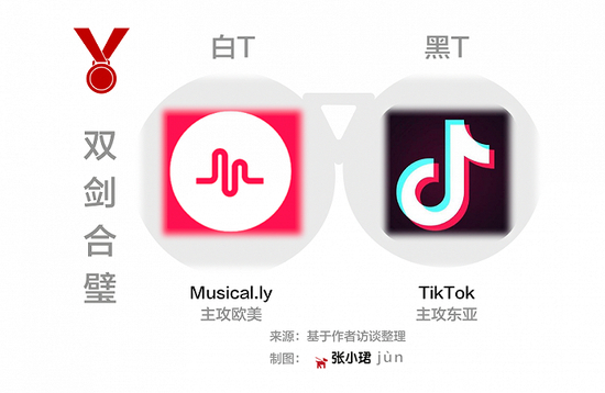 Musical.ly和TikTok的渊源也一并流传下来。一位TikTok知情人士称,Musical.ly的图标是白色为主色调,TikTok是黑底,故而:一个叫“白T”,一个叫“黑T”。“白T”主攻欧美,“黑T”主攻东亚,后来公司传出两个产品有意“划江而治”的佳话。有后来的员工认为,这也可能是张一鸣收购时的谈判技巧——打出一张感情牌,“让Musical.ly觉得,你不是来抢我地盘的”。