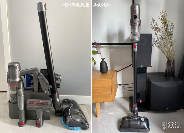 小狗这款T12 PlusRinse给大喵种草的点就在于吸尘擦地可同时完成,而且搭配的吸尘头非常多,可以解决全屋的吸尘除螨擦地需求,而且大部分头上面都带有灯,可以满足清洁清洁照明需求。全屋清洁面面俱到,一个机器满足全屋清洁需求。要不家里又是吸尘器又是除螨仪又是洗地机的很烦,也没那么多地方归置,有这一个全搞定 。而且T12 PlusRinse充电基座还兼备收纳功能。十分省地方。