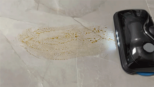 大喵把菜汤弄在地上,过了半小时,大喵使用旋转擦地刷,轻松搞定地面上凝固的菜汤油污。