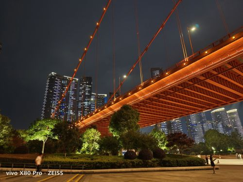 而在更考验相机实力的夜拍场景,得益于5000W像素独家定制GNV超大底主摄和自研芯片V1+的超强算力,vivo X80 Pro可以在极暗环境下实现“微光手机‘夜视仪’”的效果。在大部分场景下画面亮度会比实际场景更亮一些,有助于提升暗部细节表现,同时样张画面纯净通透,色彩还原很准确,复杂的灯光色彩都能精准还原,在保证还原度的同时,画面观感也十分出色。