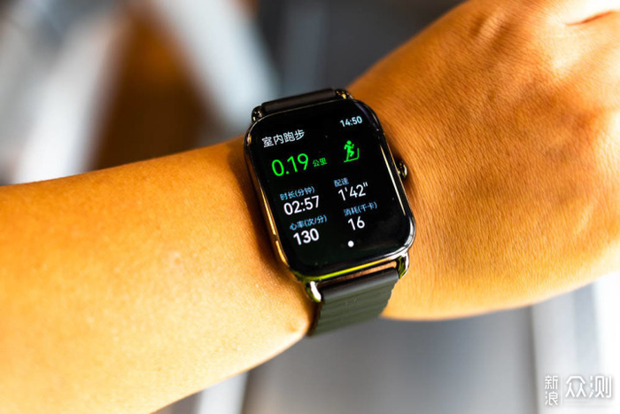 下面跟我一起在健身房体验一下这款手表吧。因为有些图在运动中拍摄,所以照片会比较模糊。这款手表既可以戴在右手,也可以戴在左手。因此磁吸式的设计,因此拆戴都很方便,即使在运动中进行调整,也会方便许多。可以看到这款绿色运动的表盘,以及磁吸式的表带,使用起来非常方便。