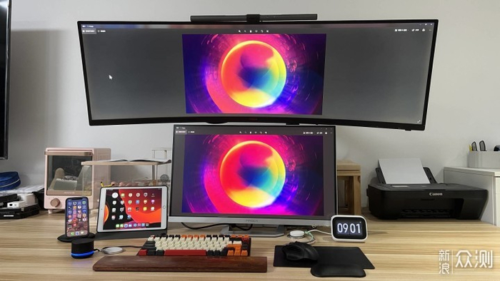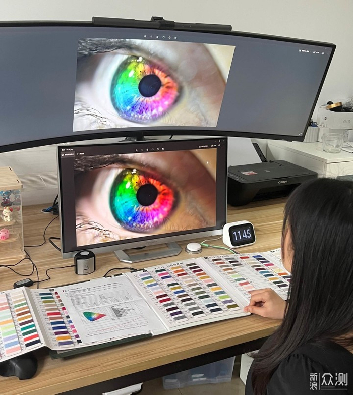 之前就说过我和猫本职都是设计师,然后这最近已经基本是居家办公模式了。之前入手的显示器是带鱼屏为了方便多屏幕操作,但颜色真的是比较惨,正常娱乐可以接受,但我们做设计看图,传回去公司后看色差较大。就一直想着换个颜色好的。