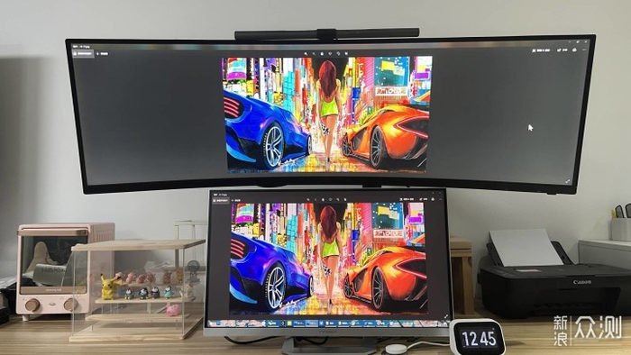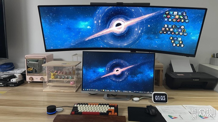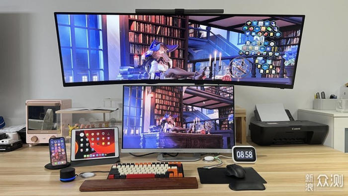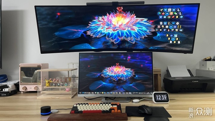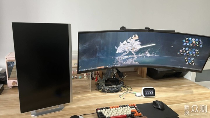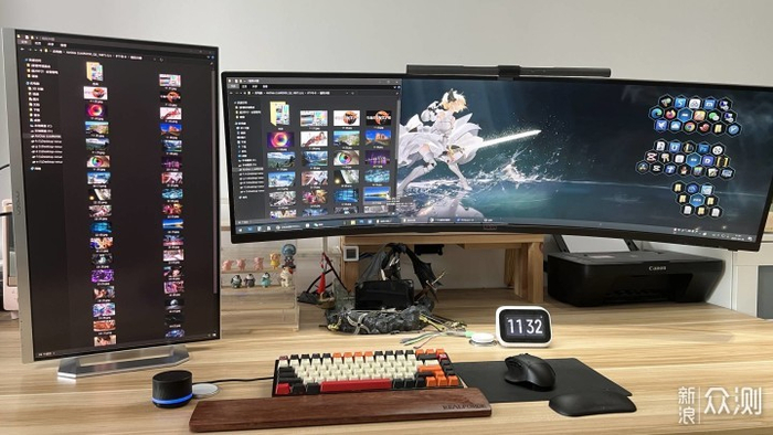 因为我是用来做副屏幕的本来我是想27寸放旁边竖起来的,但一开机后画面就非常惊艳,没有对比就没有伤害啊!所以我就打算放下面中间做主屏幕好了。