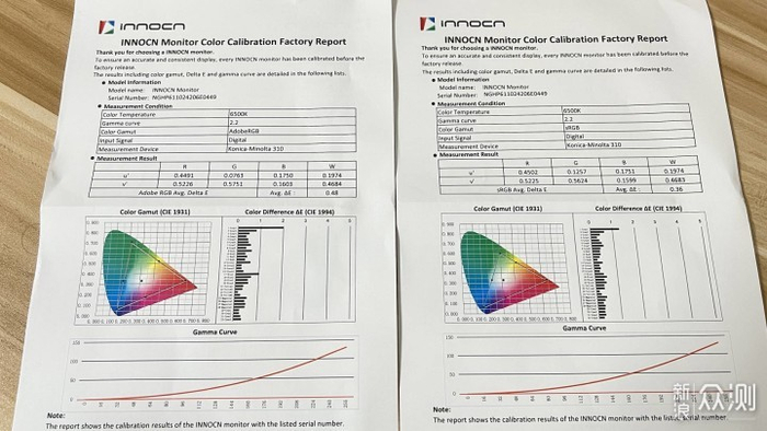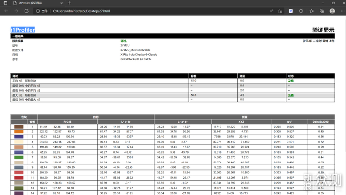 色准非常好。△E小于1,如果只是平面设计类的话,这个确实是校色好了的,所以基本不用你另外校色了。