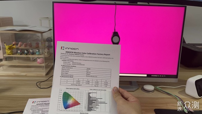 既然是设计师显示器,主打色准,而且说明也写了△E小于1。这个显示器还同时提供了出厂校色,确保画面色彩可以得到精准的还原显示。虽然第一眼很惊艳,但到底是不是能到这个效果呢,当然需要测试认证。