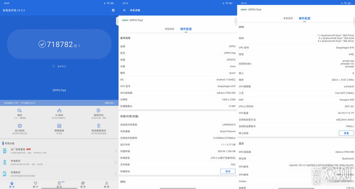 因为大家都清楚,OPPO Pad采用了当前的骁龙备受好评的神U:骁龙870,所以性能简单看一下。