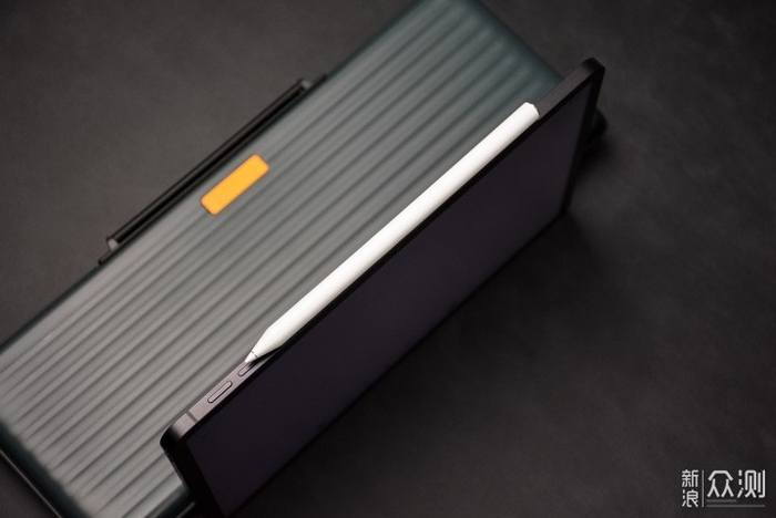 平板的上边框,设计了分体式的音量按键和麦克风,以及给手写笔充电的磁吸口;下边框是一整块金属边,没有任何接口。