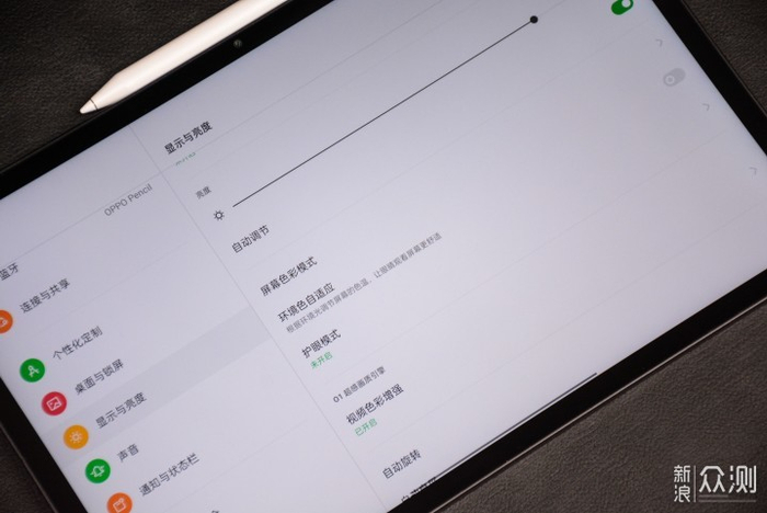 还是先来说一下,OPPO Pad的屏幕。上文也提到了LCD材质、硬件级防蓝光,除此之外,OPPO Pad同样支持环境色自适应,非常不错的设计。