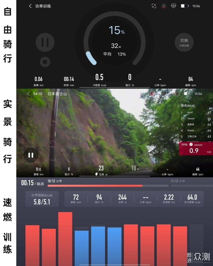 如果认为动感单车只要外观OK,骑行舒适,那其实陷入了一个很大的误区。我去健腹轮无法大体量坚持就是没有引导,而野小兽在这方面做得非常不错。配套的app中,不仅有各种难度等级、不同时长的训练,还有自由骑行、实景骑行、速燃训练模式。
