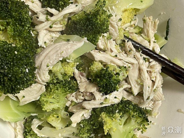 实测也把西蓝花换成卷心菜,同样小片沸水焯熟。鸡胸肉也换成过猪肉,实测6分钟整块肉中间熟不了,故而切成小块煮熟在手撕,都是一个道理,大家懂的变通就好。