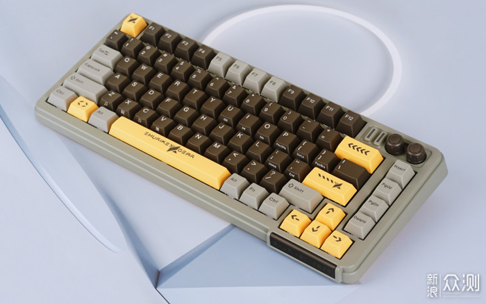 在键盘右下角侧面设有一块类似铭牌的单独模块,印制有“Shurikey Gear”文字。