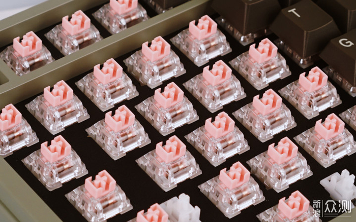 键盘所使用的卫星轴出厂前进行人工手动润滑,笔者的这把 才藏 在实测中没有出现弹簧音,且按下去的顺滑度也很好。