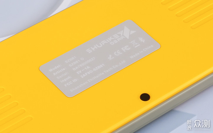 键盘背面中央处设有一块铭牌,印制有产品的相关参数。