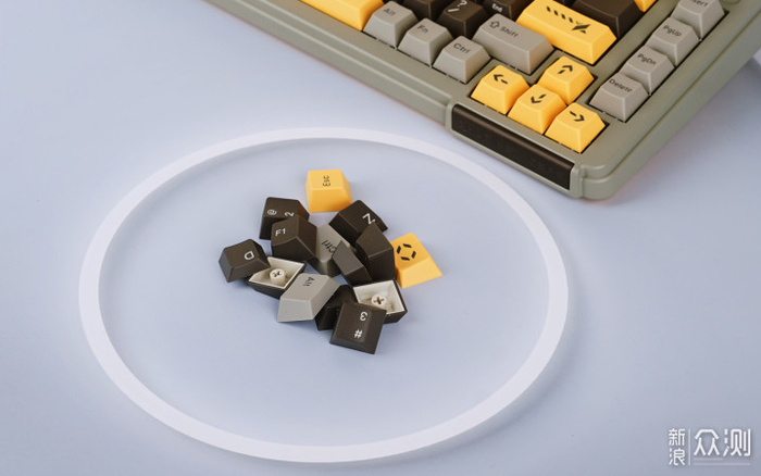 才藏全系键盘所搭载的键帽均为ABS材质、二色成型工艺、原厂高度、1.5mm厚度,品牌称其细节标准对标知名品牌GMK的二色键帽,并对GMK键帽的字符、厚度、适配性(如GMK不适配上灯位键盘)等进行了优化,触感丝滑。