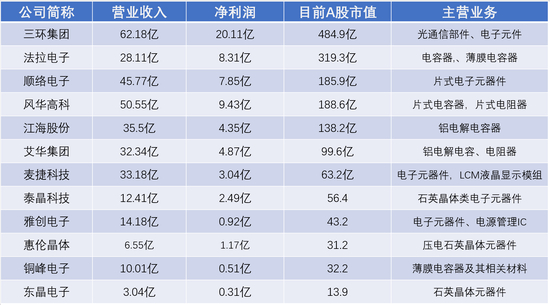 图表9:被动电子元器件行业上市公司2021年营收\净利润\最新市值