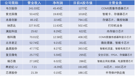 图表2:数字芯片设计上市公司2021年营收\净利润\最新市值
