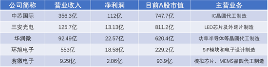 图表6:晶圆代工上市公司2021年营收\净利润\最新市值