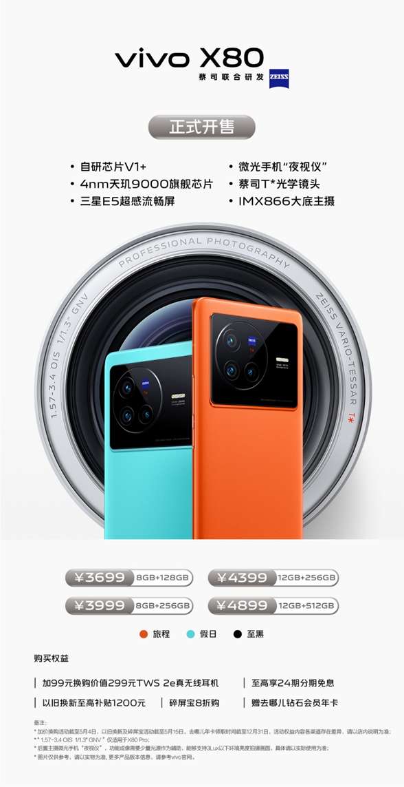 3699元起,专业影像旗舰vivo X80系列正式开售