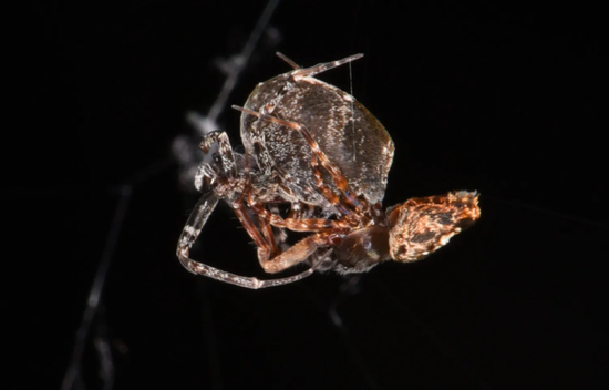 所以,科学家把一些雄性和雌性隆喜妩蛛请进实验室,把雄蜘蛛放到雌蜘蛛的网上,就这样让155对蜘蛛交配成功——雄蜘蛛把自己的触肢(pedipalp)插入雌性生殖器的开口处,把当中盛放的精子传送给女友。