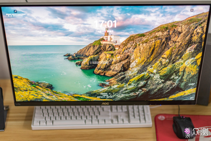 显示器没有底座的空间占用后,桌面空间明显变大了很多,平时玩玩游戏等情况下,还可以将键盘放到显示器下方。