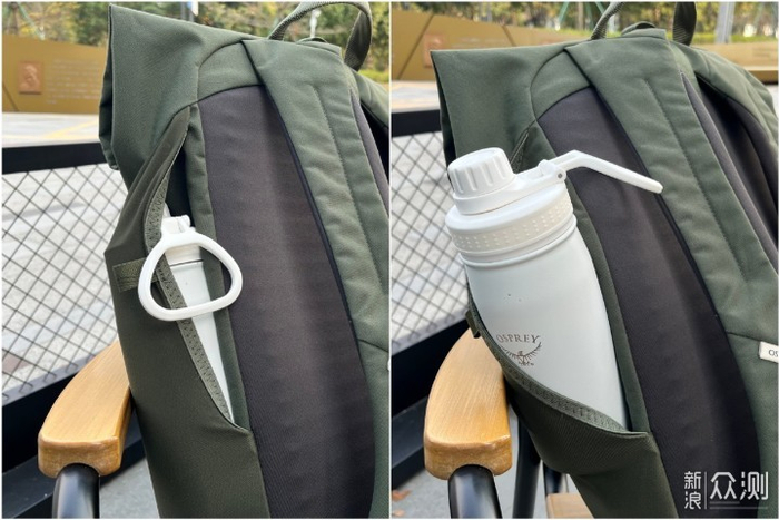 相比Ospy Tote来说,Roll Top多了个侧开口的水壶仓,取放水壶很是方便,收起来的时候水壶不会外露,也显得更简约。