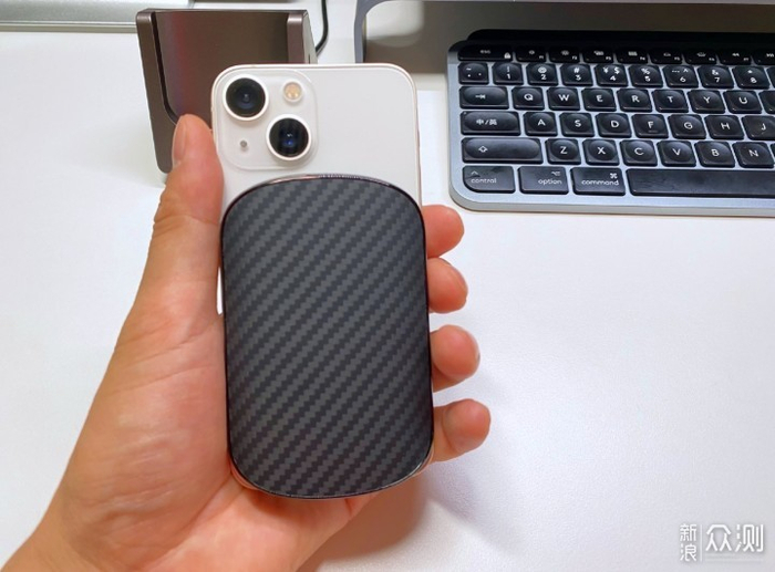 这款充电宝不管是从侧面还是背面看都非常的有质感,和手机吸附在一起的时候持握也非常的舒服。在用过一段时间的PITAKA高端凯夫拉材料之后,我对这种材质非常的认同。不管是手机壳还是充电宝,用上了高端芳纶纤维材料的,个人觉得都配得上YYDS!