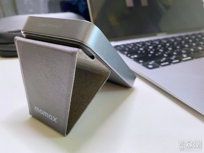 这款充电宝自带皮质支架,手感很舒服。日常使用的时候,我喜欢把充电宝立起来当做手机支架。