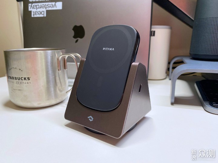 尺寸来说,这款充电支架比我的不锈钢星巴克马克杯还要小了一圈。
