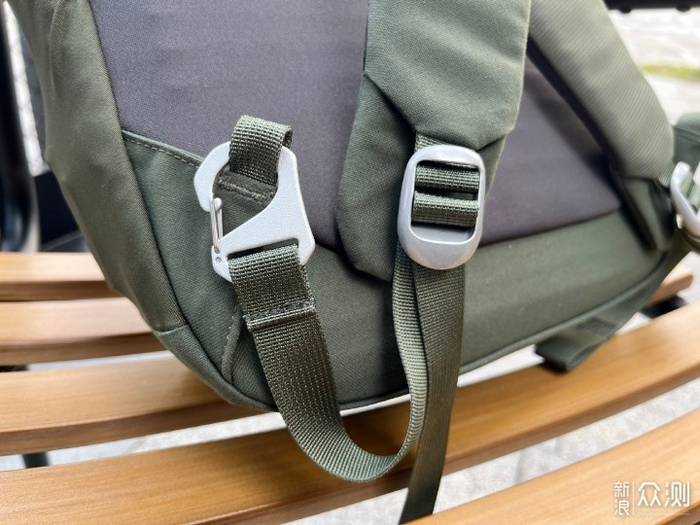 隐客背板采用的是升级后的空景背负,自带一定的弧度,背板的支撑做的还不错,灰色部分采用舒适的亲肤面料也不再有当初网面材料把衣服磨起球的问题。