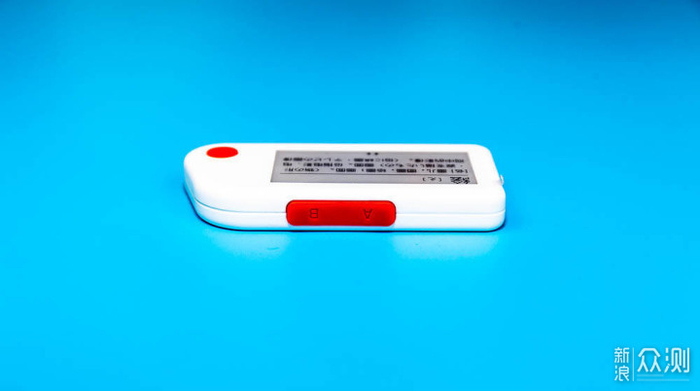 在电子单词卡的顶部有连在一起的两个红色的按键,A键和B键,在显示内容的时候,表示前进和后退,或者上一页和下一页。需要说明的是,这些按键和按钮都是硅材料的,触感细腻,响应灵敏。