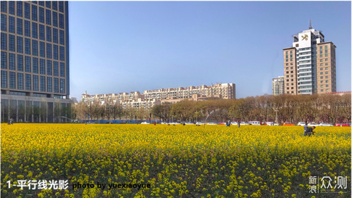 ▼ 同样角度,脚步后移,正好有一片大楼的阴影投射在花海,用来作前景,一张“渐变”花海就有了。