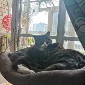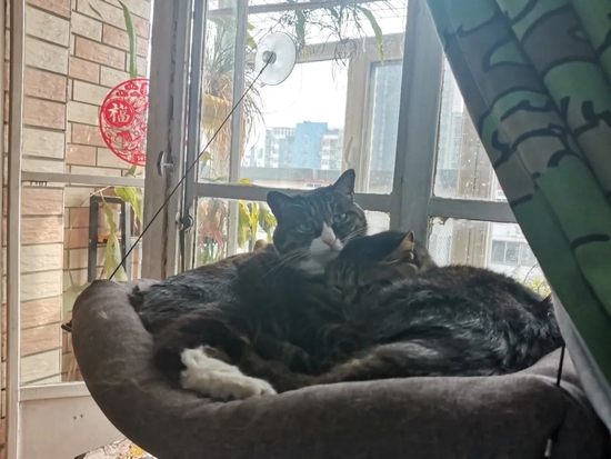 小胖很胖,粘人,小臭不那么胖,不肯亲近人,虽然这名字确实有些敷衍,但还蛮符合它们各自的特点。好在这一点都不影响它们如胶似漆地依偎在一起睡大觉。