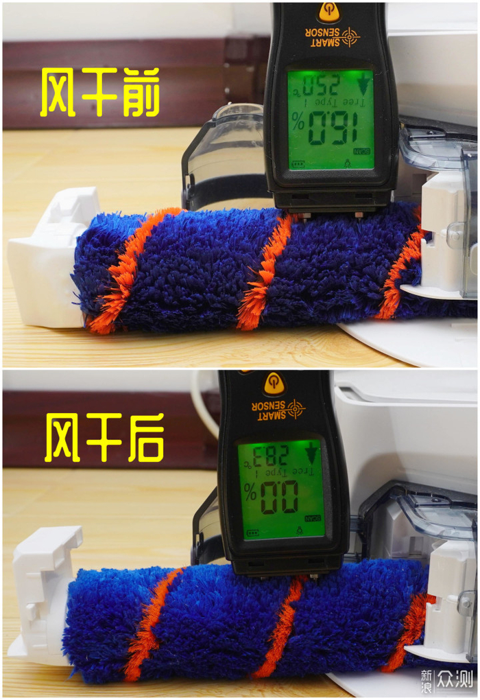 实际上,洗地模式回充后,机器内部的滚刷和放在充电底座里的备用滚刷都能风干。区别在于在充电底座风干需约12个小时,在机器人上风干约6个小时。实测效果可以,能够完全干燥。