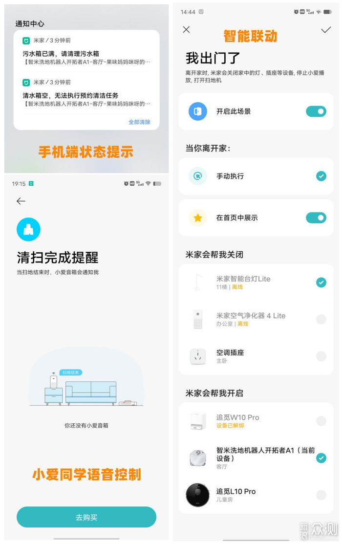 另外,接入米家APP后,可用小爱音箱语音控制,也可以作为智能家居的触发或响应环节,还有使用状态提示。跟其他可接入米家的智能家电一样,就不多说了。