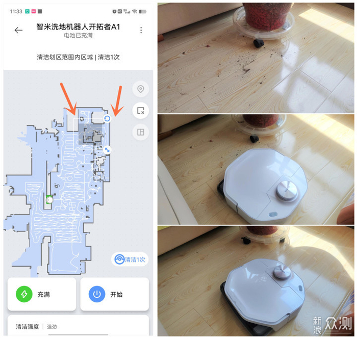 有一天女儿把花盆里的土抠了出来,洒了一地。我坐在沙发上,使用了划区清洁,设定2次清扫,定点定位,高效清洁,最终效果还不错。