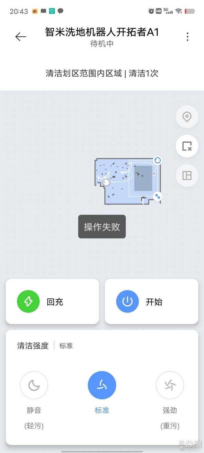 在米家APP中,除了常规的开关、回充,还可以实现自定义定点清洁、区域清洁(重污定点清洁)。