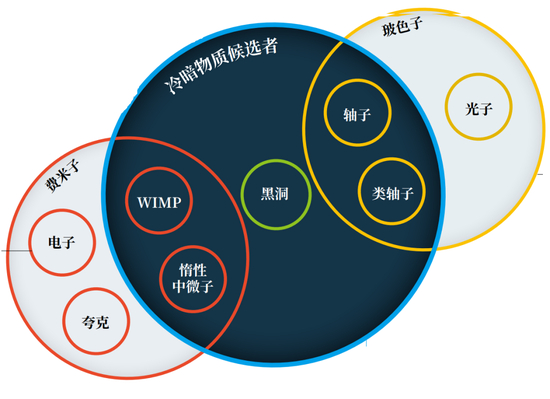 物理学家已经考虑了各色的暗物质候选者。大多数科学家倾向于“冷暗物质”,即由运动速度要比光速慢得多的非相对论性粒子组成的暗物质。在冷暗物质中,经典的模型之一是弱相互作用大质量粒子(weakly interacting massive particle,WIMP)。科学家们推测,在宇宙早期这种粒子可以自然地形成,并通过弱力与常规物质有一定的相互作用。最受欢迎的WIMP粒子是费米子,这是包含电子和夸克在内的一类粒子。