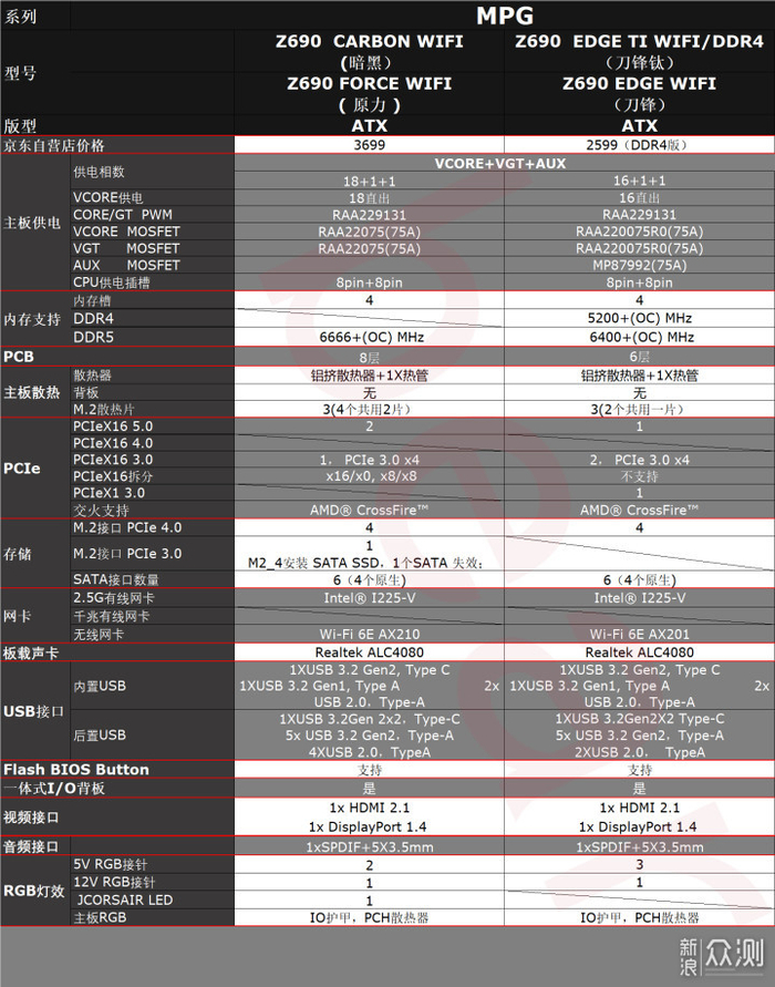 Z690 CARBON WIFI (暗黑)和FORCE WIFI ( 原力 )