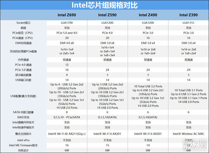 Z690 PCH最多可提供12条PCI-E 4.0与16条PCI-E 3.0,再加上12代酷睿具有的16代PCI-E 5.0,这样一共48条PCI-E通道。11代酷睿+Z590为20条PCI-E 4.0+24条PCI-E 3.0,共44条PCI-E通道,虽然只有多了4条,但多了PCI-E 5.0,更具战未来的能力。
